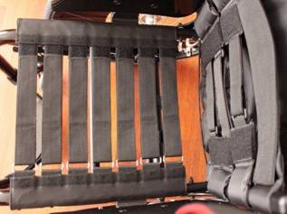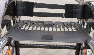 Oprócz standardowej tapicerki (materiał: poliester) stosowane są materiały „oddychające”: Aero back, zmniejszające wagę: Light oraz skóra Alcantara. Bardzo ważne jest wyposażenie zarówno tapicerki oparcia jak i siedziska w regulację naprężenia tapicerki przy pomocy pasów. Pozwala to optymalnie (płynnie) dostosować postawę użytkownika siedzącego na wózku na bazie „sztywnych” ustawień fabrycznych wózka. Np. dociągając pasy w tylnej części siedziska zmniejszamy kąt całego siedziska i odwrotnie: luzując pasy w tylnej części i dodatkowo dociągając je z przodu możemy zwiększyć kąt siedziska nawet o kilka stopni. Dodatkowo pasy pozwalają wyprofilować oparcie i siedzisko do naturalnej krzywizny ciała. Co pół roku pasy powinny być rozpinane i spinane na nowo. W ten sposób zawsze zachowamy optymalne napięcie pasów i właściwą sylwetkę ciała.