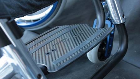 Funkcją podnóżka jest zapewnienie optymalnego oparcia dla stóp użytkownika. Ponadto, łącząc się z dolną częścią ramy, nadaje on sztywność całej konstrukcji. W wózkach z ramą sztywną stosuje się podnóżek rurowy (waga: aluminiowy 360g lub tytanowy 210g) lub lub specjalną płytę wykonana z włókna węglowego (waga: 790g) lub tworzywa sztucznego, która posiada możliwość ustawienia dowolnego kąta. Ponadto podnóżek może być wysoko montowany, jeśli użytkownik ma krótsze kończyny dolne. W ramach składanych stosowane są płyty podnóżka oraz podnóżki niezależne, na prawą i lewą nogę, odchylane lub całkowicie demontowane (modele Ultra-Light, Champion i Compact). Odpowiednia wysokość podnóżka pozwala uniknąć ucisku w okolicach tylnych części ud, gdzie kończy się siedzisko z przodu, oraz zapewnia prawidłowe krążenie w kończynach dolnych. Zbyt wysoko zamontowany podnóżek powoduje nadmierne przeniesienie ciężaru ciała na guzy kulszowe i jego złe rozłożenie na siedzisku. Podnóżek powinien być zamontowany w taki sposób, aby zapobiec zsuwaniu się stóp. Można to osiągnąć przez odpowiednie ustawienie kąta ramy (anatomiczne ustawienie kończyn dolnych) – zazwyczaj 75 stopni a także stosując odpowiedni kąt ustawienia płyty. Pomocnym jest zastosowanie listew antypoślizgowych w podnóżkach karbonowych.