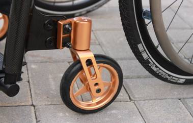 Proponowane w rozmiarach 3, 4, 5 oraz 6 cali. Kółka 3-calowe stosowane są przez najbardziej aktywnych użytkowników, 4-calowe to rozmiar średni, najbardziej popularne to, 5 calowe. Kółka 6 calowe są proponowane dla użytkowników ceniących sobie komfort jazdy i bezpieczeństwo. Przednie kółko, podczas poruszania się wózkiem, jest narażone na „atakowanie” nierówności, krawężników, stopni, nierównego podłoża (bruk). Im mniejsze kółko, tym ten „atak” będzie trudniejszy i stabilność jazdy będzie mniejsza. Ponadto większe kółka lepiej „wybierają” nierówności i drgania, nie przenosząc wibracji na wózek. Należy jednak pamiętać, że mniejsze kółka mają mniejsze opory toczenia i dzięki temu używa się mniej siły do napędzania wózka. Kółka te mają również mniejszą wagę. Często użytkownicy nie zwracają podczas doboru wózka uwagi na te szczegóły, skazując się na możliwość niekomfortowej jazdy. W wózkach aktywnych kółka przednie są zazwyczaj pełne, niepompowane.